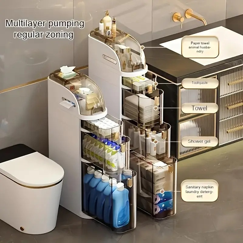 Make the most of every inch in your home with this 7.09-inch Slim Gap Storage Cabinet. Specially designed for narrow spaces, this freestanding cabinet fits perfectly between appliances, next to toilets, or in kitchen corners. It features multiple easy-glide drawers that offer generous storage for daily essentials like toiletries, spices, snacks, or cleaning products.