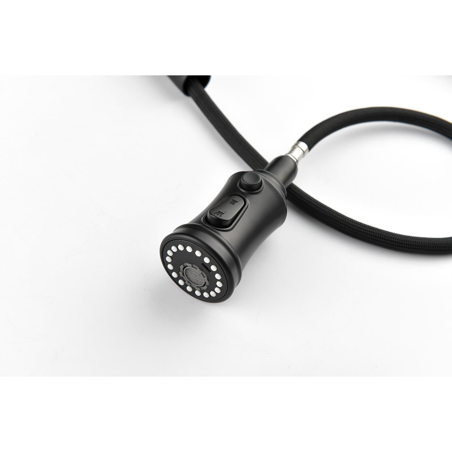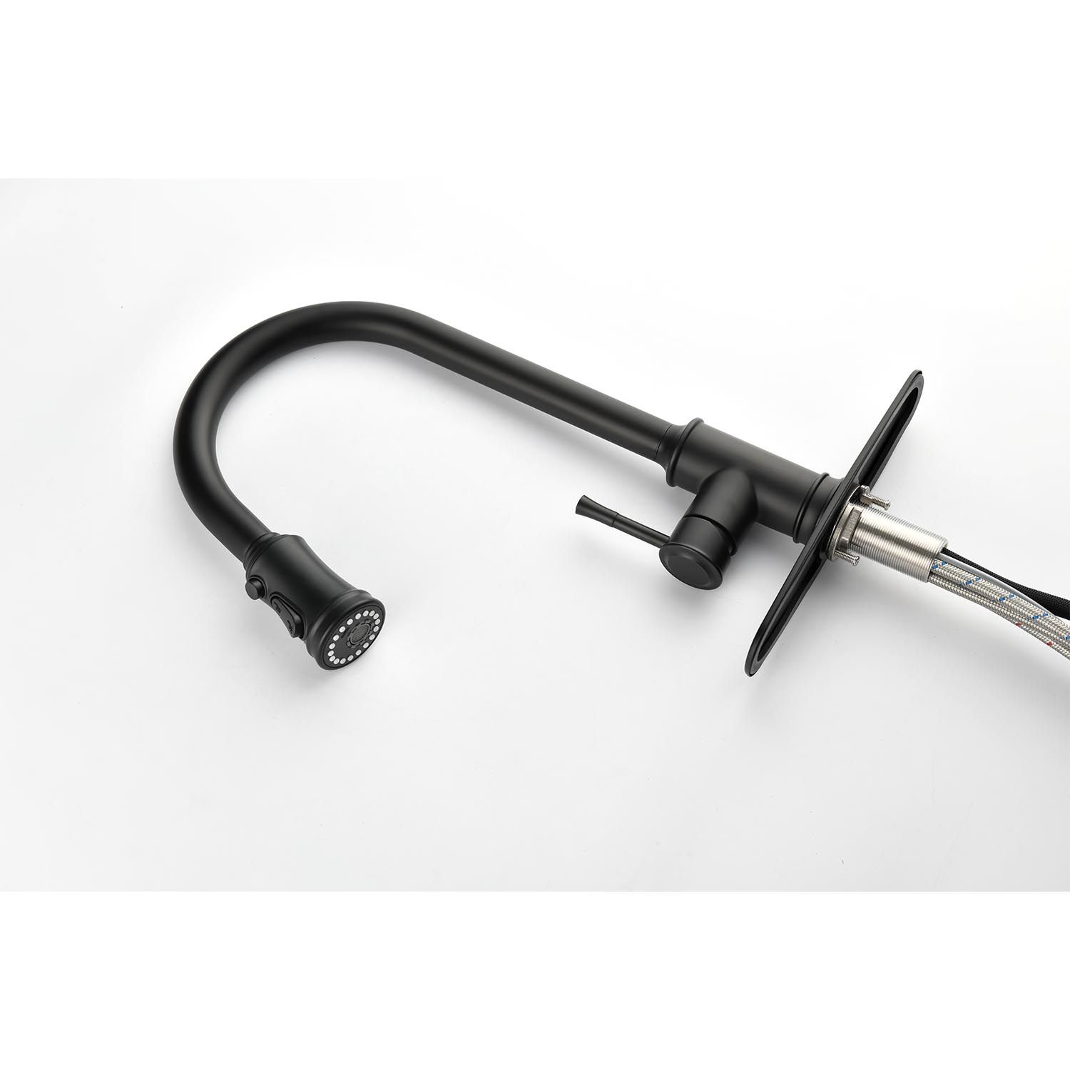 The kitchen faucet with pull-down sprayer has a simple and stylish design that easily matches most sinks. Three water outlet functions (stream, spray and blade) to meet your various water use situations. The high-arc nozzle rotates 360 degrees to provide all-round cleaning, and the single-handle design allows easy control of water temperature and flow rate. For daily cleaning, just clean the faucet with a rag and it will look like new.