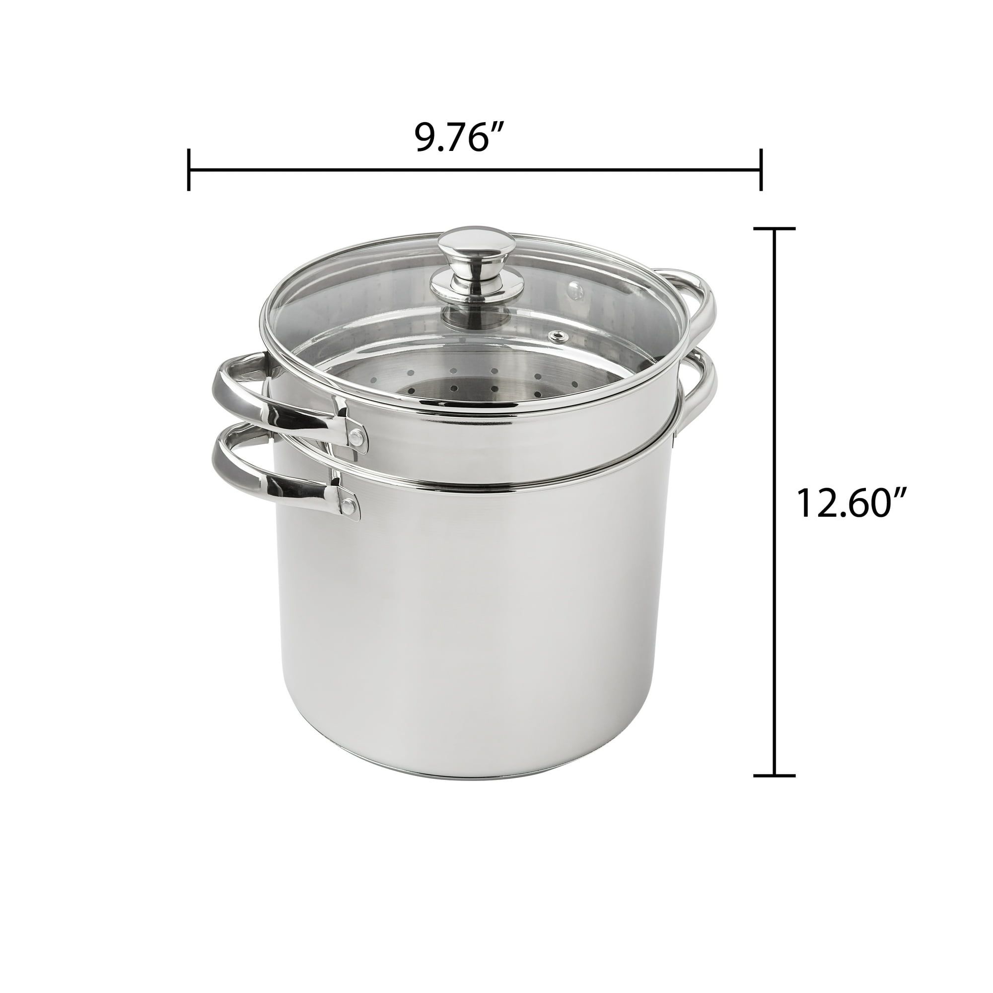 Prepare amazing sauces, pastas, potatoes, corn-on-the-cob, and more with the ample Stainless Steel 8-Quart Multi-Cooker with Glass Lid. This large multi-cooker measures 9.76" L x 9.76" W x 12.60" H and is perfect for any occasion. The 4-piece set includes a stock pot, colander, steamer basket, and glass lid. Designed with stylish stainless steel and glass, it’s sure to coordinate with your existing cookware. This sturdy multi-cooker features stay-cool handles, a heat- and shatter-resistant glass lid, durable, stainless steel construction, and a tri-ply base for quick and even cooking. Ideal for get-togethers, backyard barbecues, and other special events, the 4-Piece Stainless Steel 8-Quart Multi-Cooker with Glass Lid is a must-have cookware item in any kitchen.