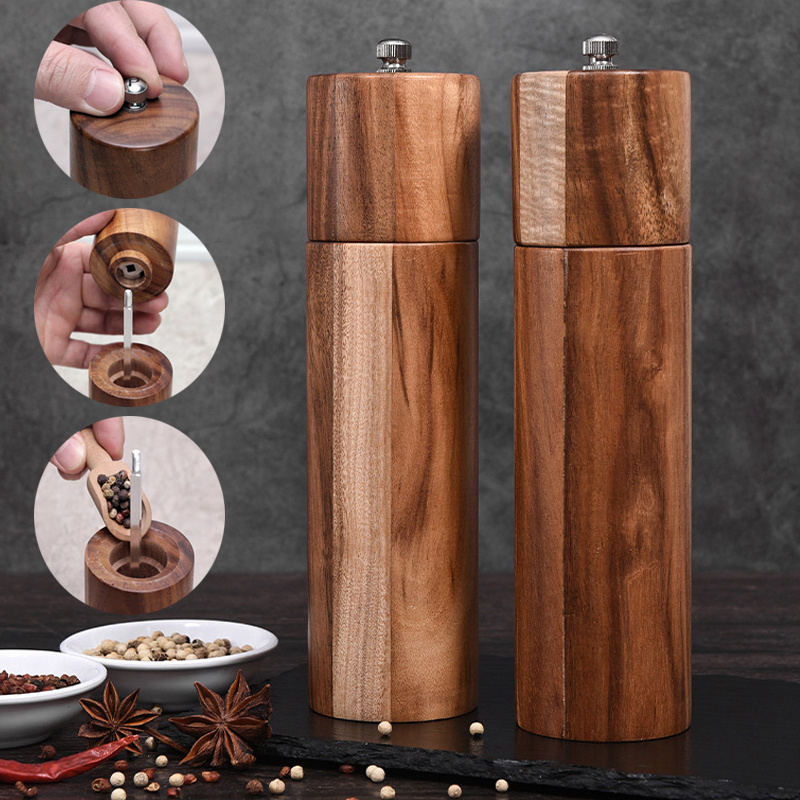 LOW-MAINTENANCE : Our large wooden mills require very little maintenance; so you can focus on more important things. Each salt and pepper grinder can house a significant amount of granules so you won't be constantly refilling them. To fill your grinders; simply unscrew the metal top and remove the wood cover; then fill with your favorite sea; himalayan; celtic salt or black pepper corn. Clean by using a damp cloth or brush.