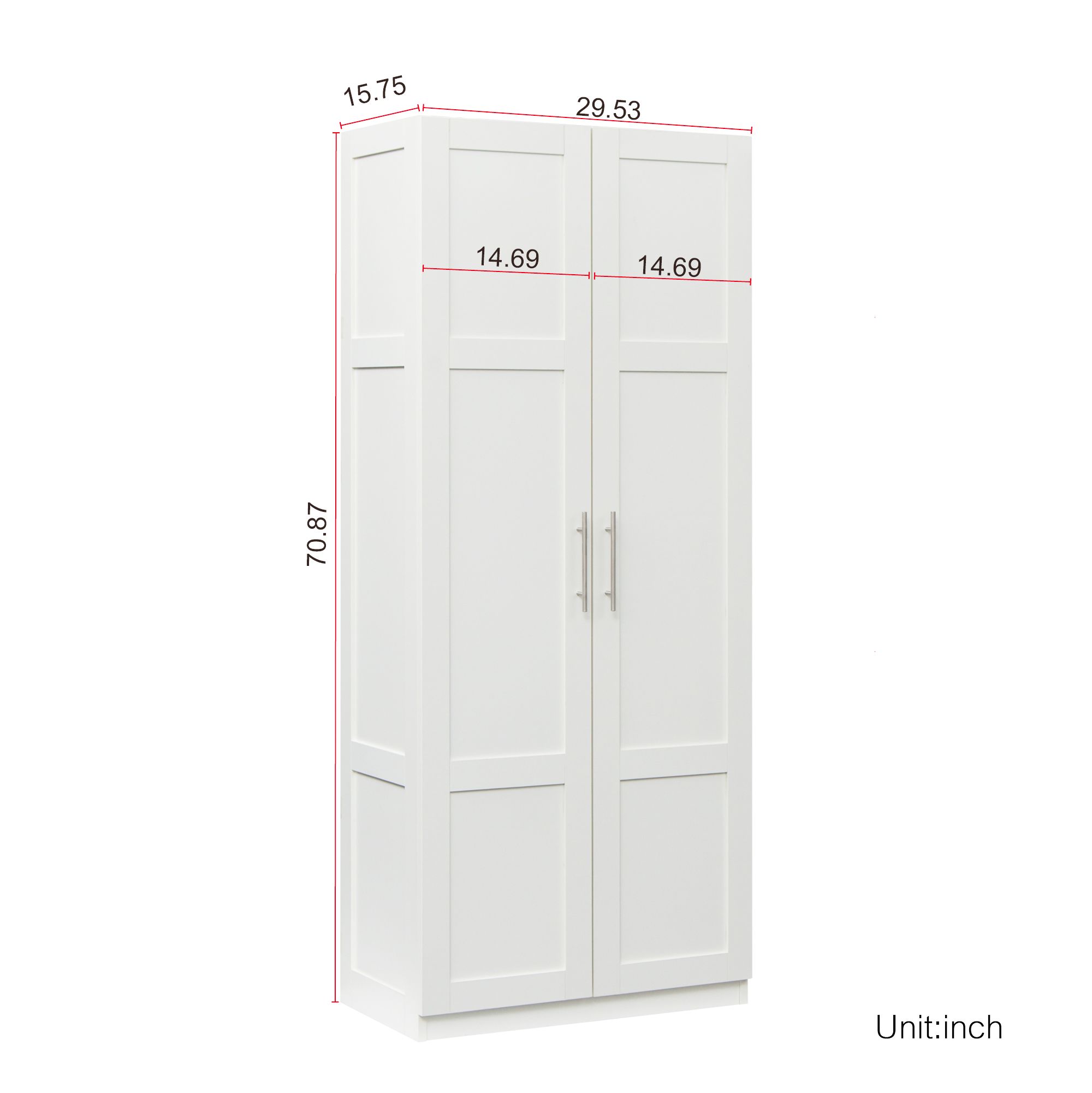 Dimensions 29.53 W x 15.75 D x70.87 H There are 2 doors and 3 shelves, which can provide more storage space