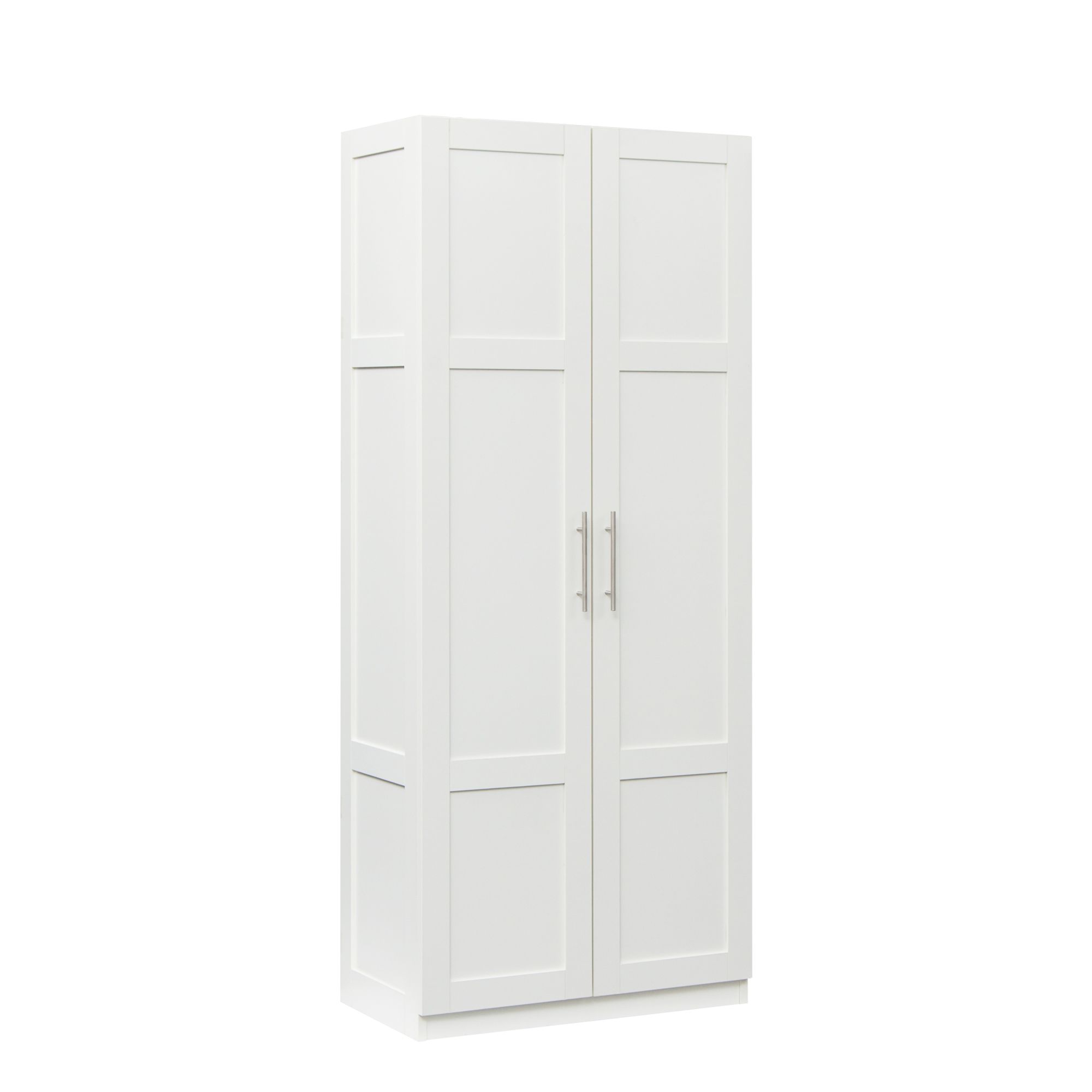 High wardrobe and kitchen cabinet with 2 doors and 3 partitions to separate 4 storage spaces,white