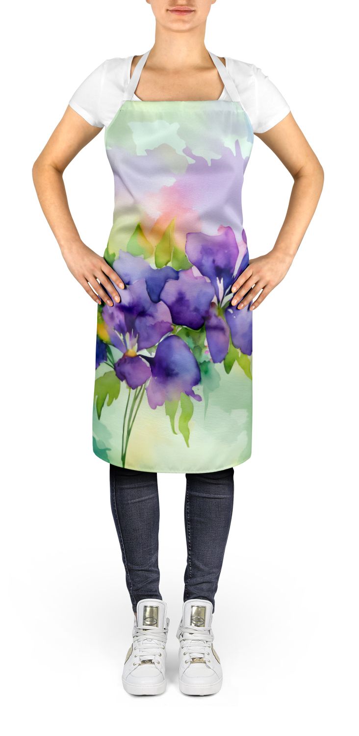 NEW New Jersey Violet in Watercolor Apron Cooking Kitchen Server Baking Crafts Gardening for Adult Women Men, Unisex, Large, Multicolor