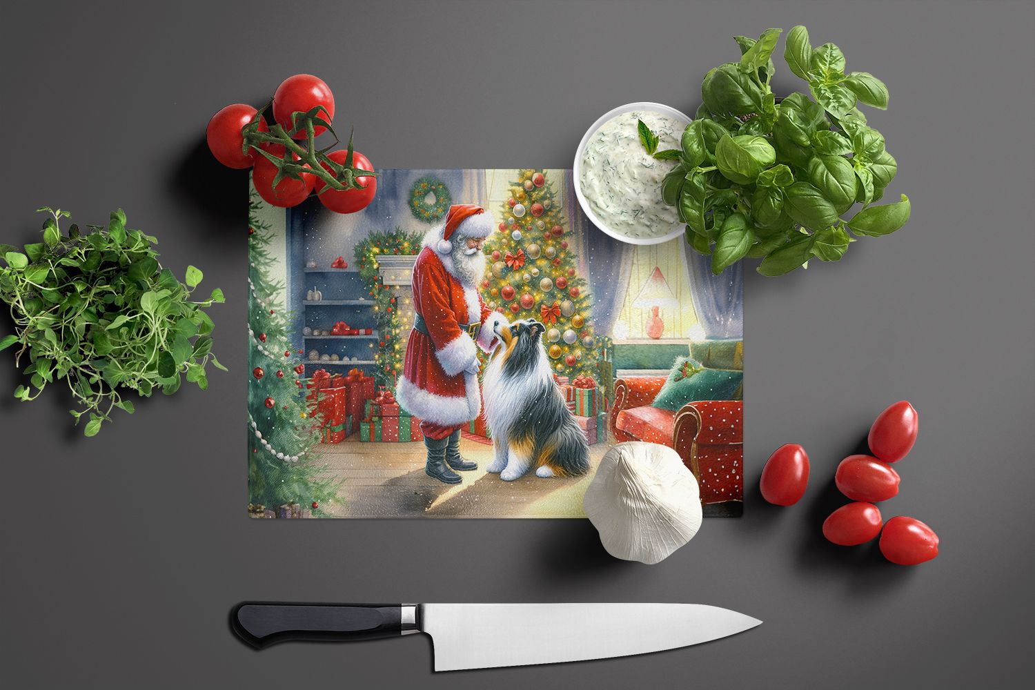 Home > NEW Collie and Santa Claus Glass Cutting Board Decorative Tempered Glass Kitchen Cutting and Serving Board Large Size Chopping Board
