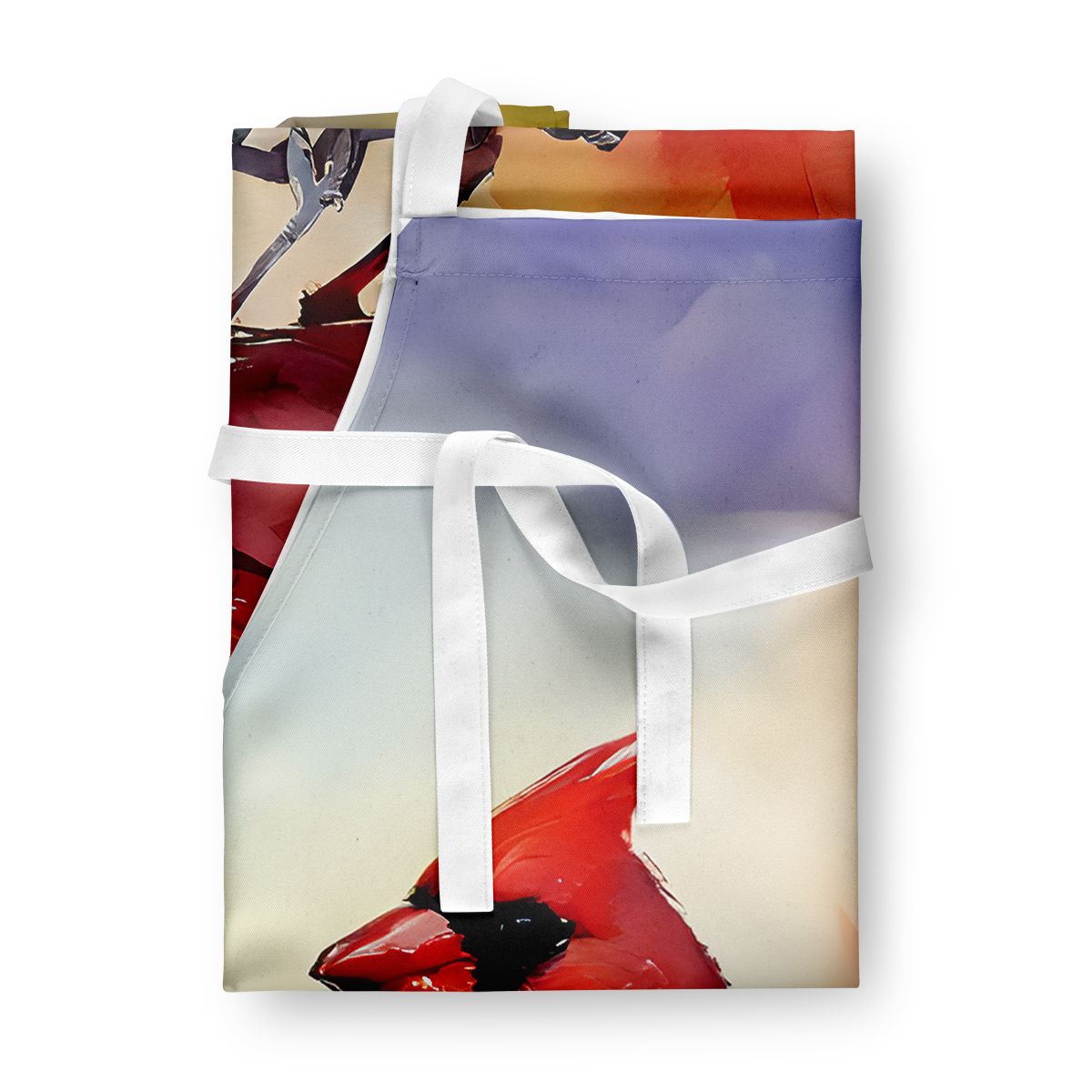 Apron featuring breed specific Cardinal artwork. Elevate your cooking, baking, and grilling experiences with our versatile Kitchen or BBQ Apron. This Bib Style apron isn't just limited to culinary activities - it also serves as an excellent baking apron, artist apron, server apron, gardening apron, or even a dog grooming apron. The apron showcases vibrant full-color artwork contributed by one of our talented artists, bringing a dash of style to your daily tasks. With dimensions of approximately 27"W x 30"H, it provides ample coverage to protect your clothing from spills and splashes. Our apron is meticulously crafted from 100% Ultra Spun Polyester, known for its durability and lightweight nature. The apron comes with white tie straps, ensuring a comfortable and adjustable fit for all. It's a perfect choice for kitchen apron enthusiasts, whether you are a woman or a man. Designed for easy maintenance, this apron is fully machine washable. The quick-drying polyester material actively reduces staining, keeping your apron looking fresh and new for longer. Our beautifully designed apron isn't just a functional kitchen accessory - it's a fashion statement in the culinary world!