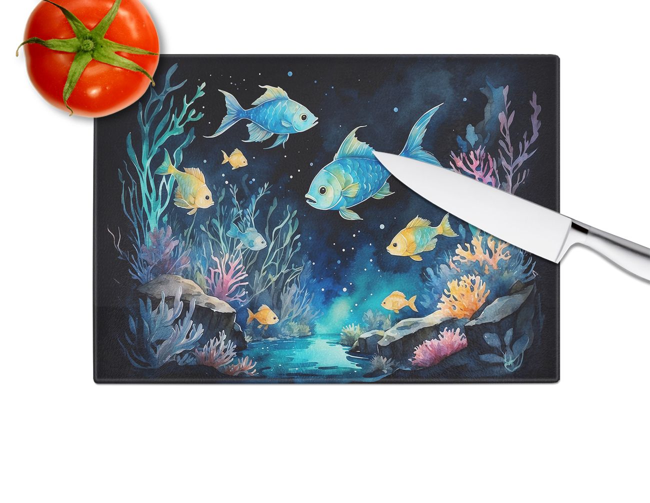 Home > Bioluminescent Fish Glass Cutting Board Decorative Tempered Glass Kitchen Cutting and Serving Board Large Size Chopping Board