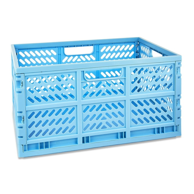 Home > 4 Pack Large Collapsible Crate, 19.68" x 13.77" x 10.23", Blue Plastic Storage Bin