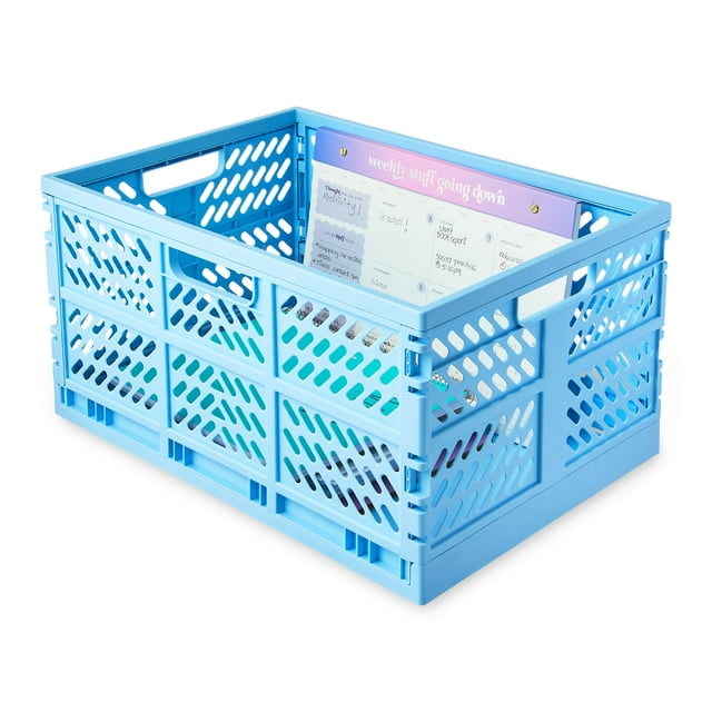 The Pen+Gear Large Collapsible Crate is an essential storage solution for your home, office, or on-the-go needs. Measuring 19.68 inches wide by 13.77 inches deep by 10.23 inches tall, the crate's spacious design provides ample room for organizing supplies, groceries, and more. The collapsible feature ensures easy storage when not in use, and the comfortable handles ensure effortless transportation. This crate is designed to stack easily to maximize your storage space.Age group is adult. Explore other Pen+Gear products like sticky notes, pencils, pens, notebooks, and much more for all your school and office needs. Whether you're decluttering your space or transporting items, the Pen+Gear Large Collapsible Crate offers convenience and reliability.