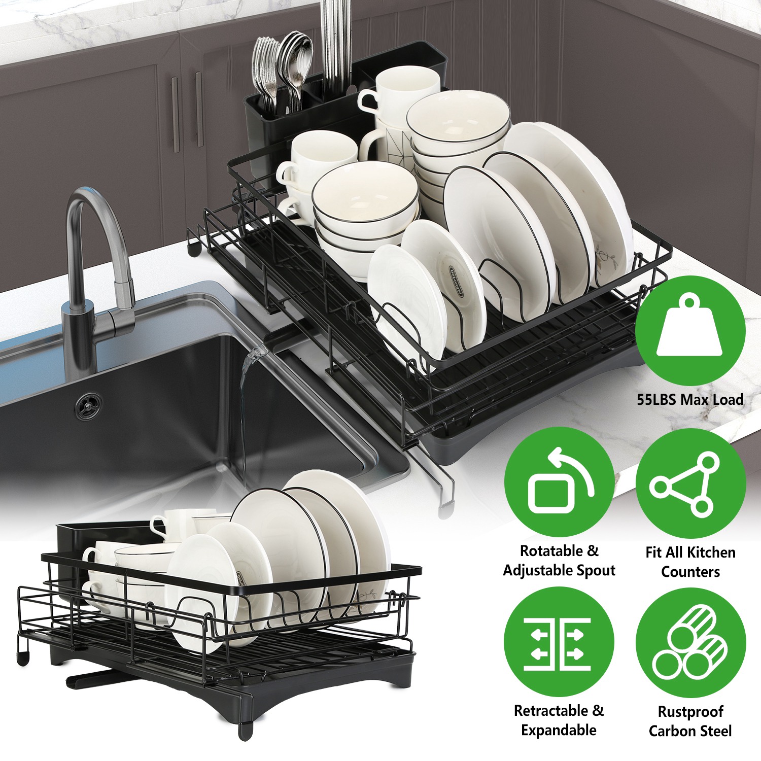 Retractable Dish Drying Rack Extra Large Dish Rack with Drainboard Utensil Holder for Countertop Over Sink Rustproof Expandable