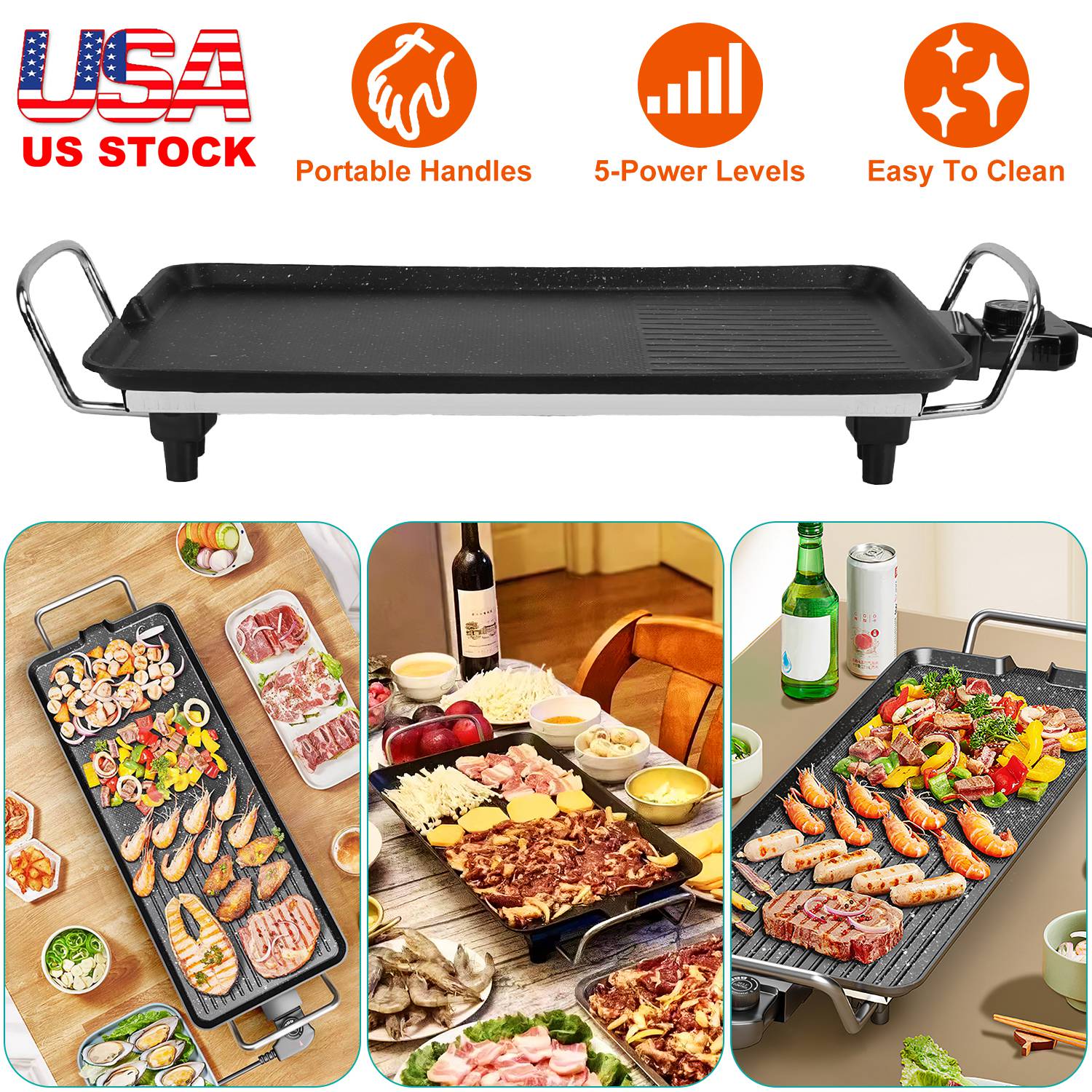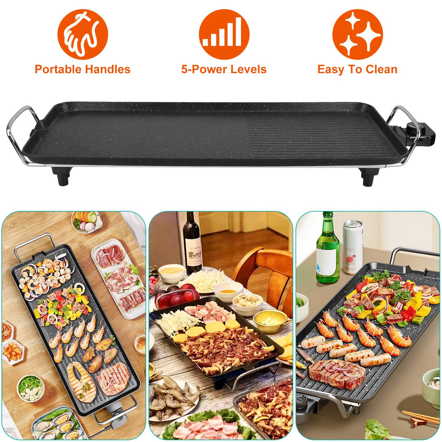 1500W Electric Barbecue Grill Hot Plate Cooking BBQ Griddle Non-Stick Table Top Grill Griddle for Indoor Outdoor Camping Picnic