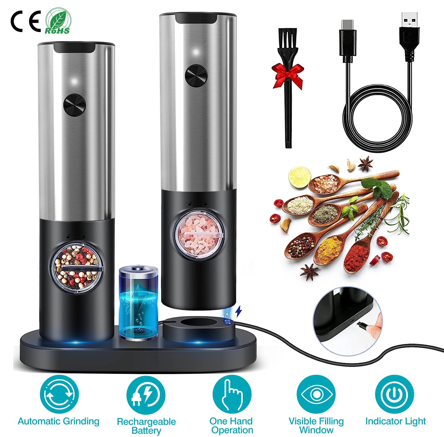 Electric Salt and Pepper Grinder Rechargeable Charging Base Automatic Salt Mill LED Indicator Adjustable Coarseness One Hand Easy Operation Electric Salt and Pepper Grinder Rechargeable Charging Base Automatic Salt Mill LED Indicator Adjustable Coarseness One Hand Easy Operation Electric Salt and Pepper Grinder Rechargeable Charging Base Automatic Salt Mill LED Indicator Adjustable Coarseness One Hand Easy Operation Electric Salt and Pepper Grinder Rechargeable Charging Base Automatic Salt Mill LED Indicator Adjustable Coarseness One Hand Easy Operation Electric Salt and Pepper Grinder Rechargeable Charging Base Automatic Salt Mill LED Indicator Adjustable Coarseness One Hand Easy Operation Electric Salt and Pepper Grinder Rechargeable Charging Base Automatic Salt Mill LED Indicator Adjustable Coarseness One Hand Easy Operation